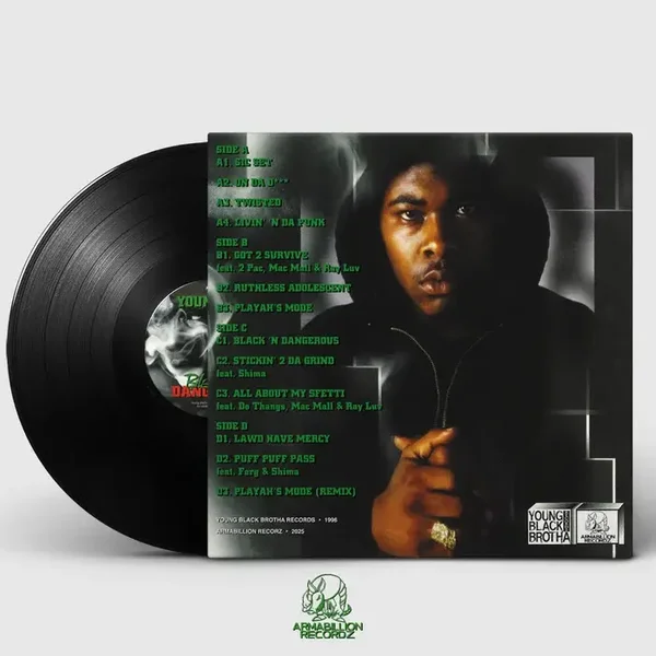 Serious monster release from Vallejo rapper Young Lay, originally released back in 1996. Double vinyl edition, handnumbered to only 300 copies courtesy of Armabillion.