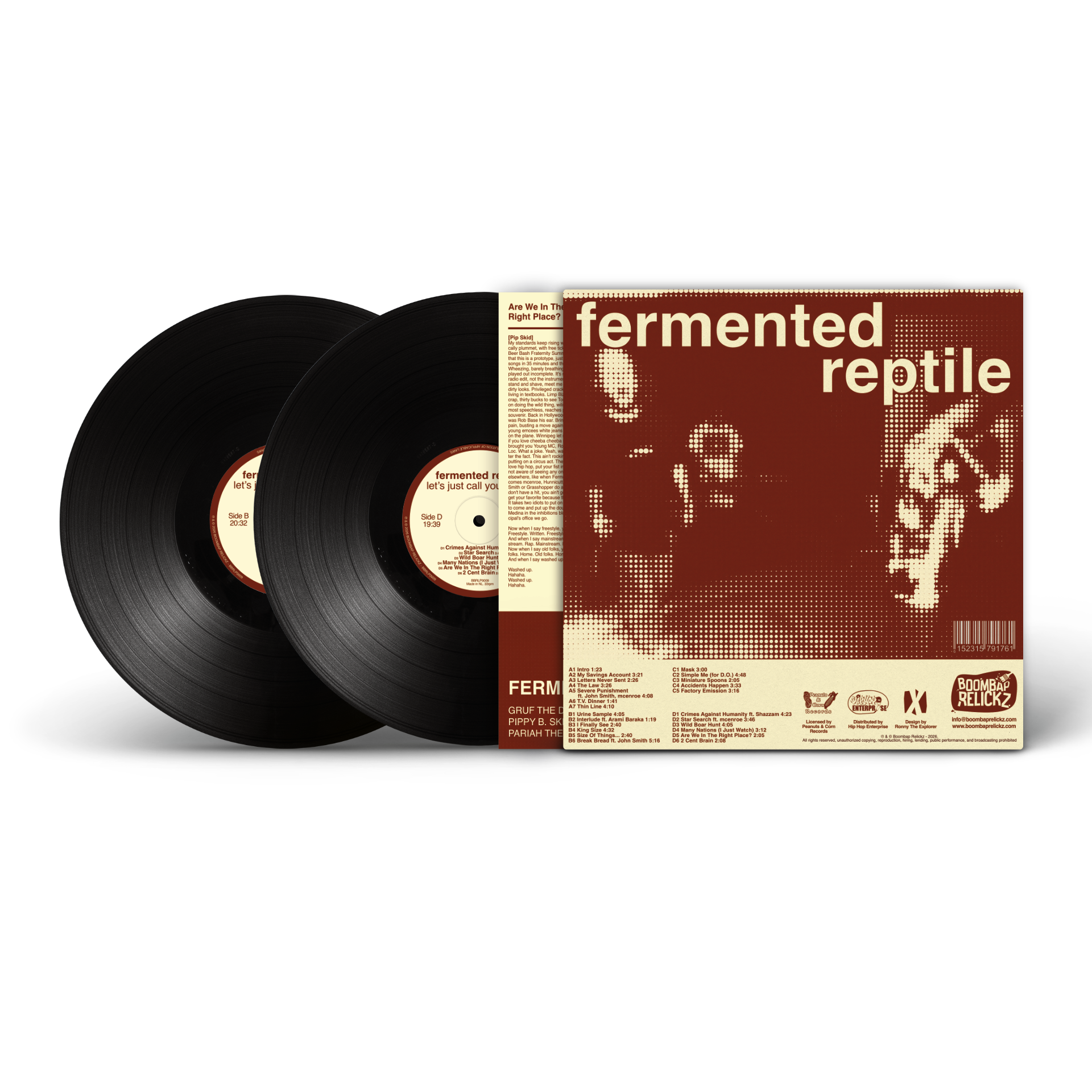 Across dusty, head-nodding production by non-other than mcenroe, Fermented Reptile dive into politics, consumer culture and the strange logic of everyday society. Tracks like “The Law” question authority and police power, while others flip perspectives and characters to expose the absurdities of modern life. It’s socially conscious rap delivered with wit, sarcasm and a heavy dose of wordplay. Raw, thoughtful and unafraid to challenge the status quo.