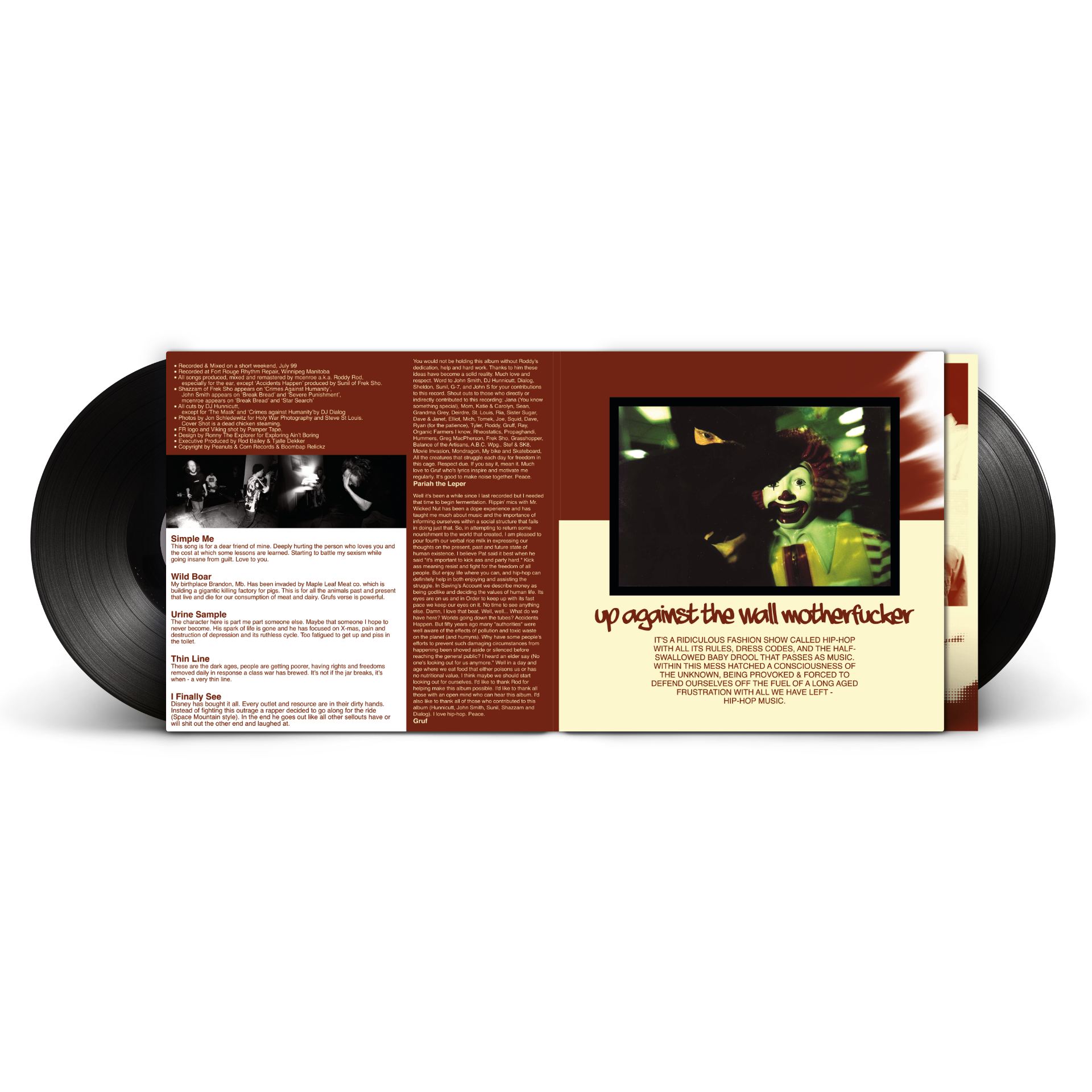 Originally released in 1999 on the legendary Canadian indie label Peanuts & Corn Records, this album brought together two sharp voices from the prairie underground: Pip Skid (a.k.a. Wicked Nut) and Gruf the Druid. What started as a new creative outlet for the two MCs quickly turned into one of the most distinctive releases from the Peanuts & Corn catalogue.