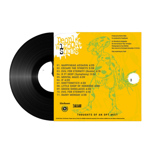 "Headed by the rapper TempOpmet, the group People Without Shoes has previously released 2 twelve inch EP’s but saw the release of their first album “Thoughts Of An Optimist” get aborted in 1995 due to their former label going bankrupt. Now, for the very first time, Taha Records and JTLM Records in association with IteM records are very proud to give to this forgotten gem a new renaissance.