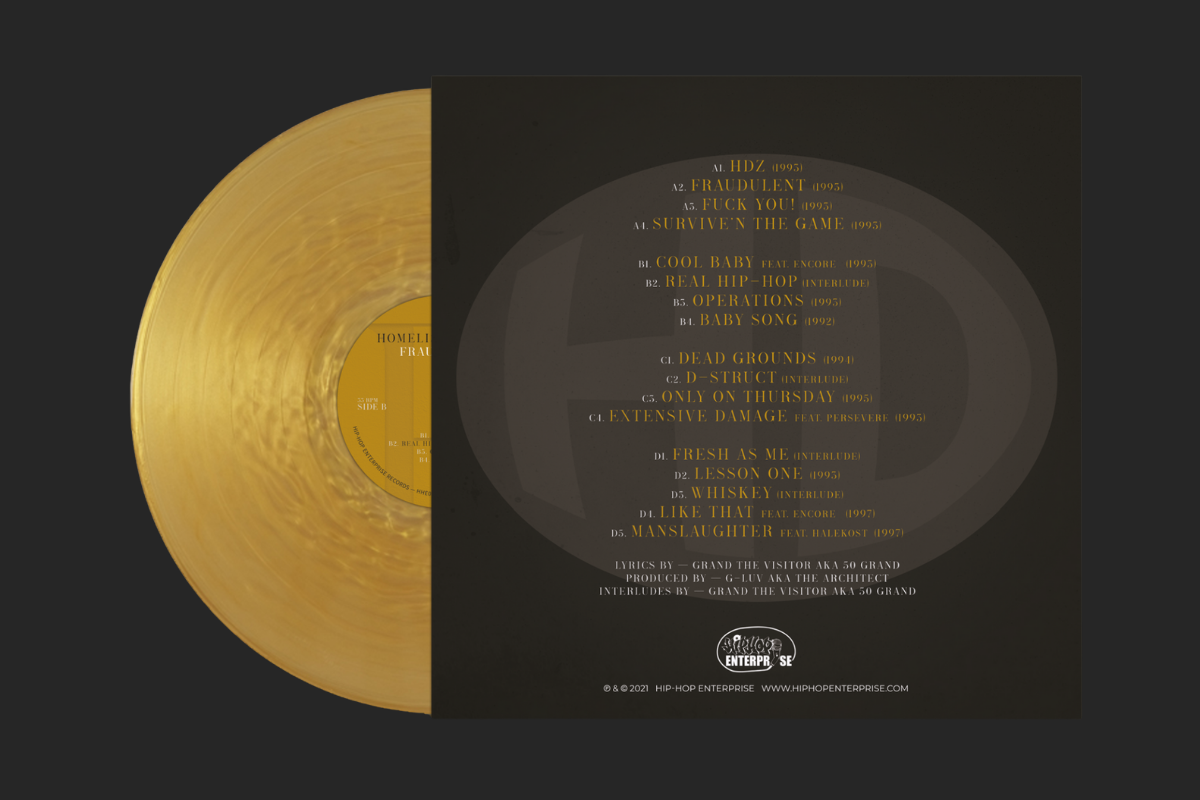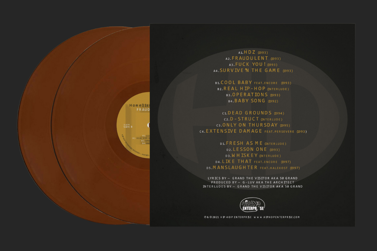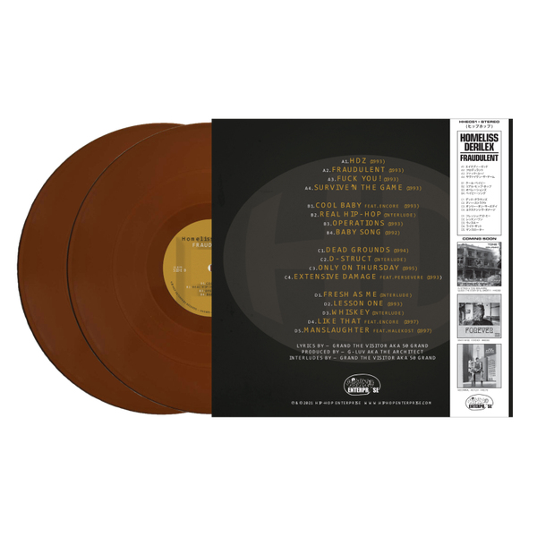 Due to the huge demand, HHE and Homeliss Derilex have collaborated to bring you a second press of Fraudulent. This time around there will be 150 copies on Brown Opaque Vinyl and 50 Brown Opaque Obi editions.
