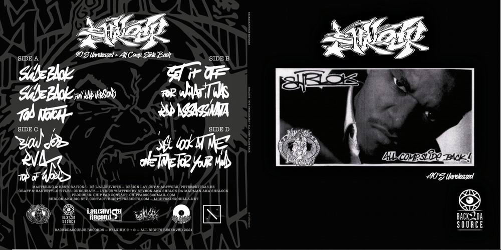 Shrlock AKA Shrlok Da Madman & his producer Chip Fab from Richmond, VA are in the house! B2DS joined forces to reissue their 12" Holy Grail from 1996 called All Comp / Slide Back with nothing less than SEVEN DOPE 90's unreleased tracks as a bonus all produced by Chip Fab and never heard before! Ill shit!