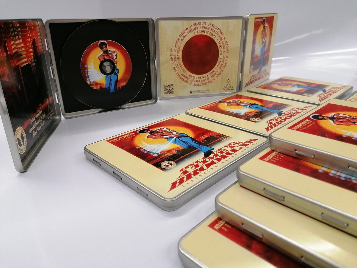 Comes with striking, dope artwork in a beautiful metal case made by Julien Galland aka DJ Diaze. High end "vinyl look" professionally pressed CD-R disc.